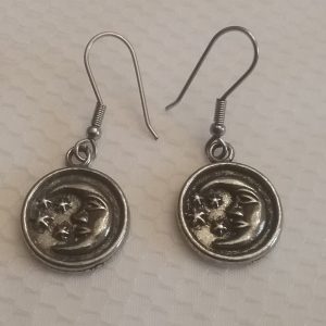 Aretes de peltre con ganchos de acero diseño de la luna hechos en Quebec
