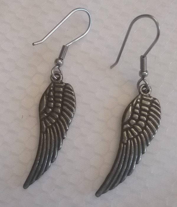 Pendiente de peltre con ganchos de acero en forma de pluma hechos en Quebec